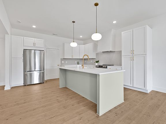 Co-designed by the seller/agent alongside East Nashville’s architectural firm Archinerd, the home features a chef’s kitchen with a custom-built island topped in Brazilian marble and a bespoke crushed limestone washed range hood.