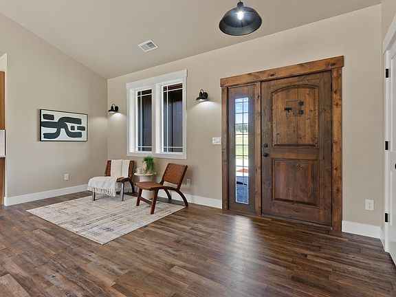 Experience the best of modern country living in this brand-new single-level home set on 9 private acres. With 3 bedrooms, a versatile den/office, and 2 baths, the thoughtfully designed floor plan offers both comfort and flexibility. A spacious 30x40 shop provides ample room for RVs, hobbies, or storage. Inside, enjoy an open-concept layout with vaulted ceilings, durable LVP flooring, and a propane fireplace accented with custom stone and woodwork. The gourmet kitchen features quartz countertops, stainless steel appliances, and a generous island perfect for gathering. The primary suite includes a walk-in closet and a spa-inspired en-suite with a double vanity, tiled walk-in shower, and a luxurious soaking tub. Relax on the covered back deck and take in peaceful views of surrounding wildlife and sunsets. Additional highlights include a 3-car garage, fiber optic internet, and a 90 GPM well. All located just off a paved county road for easy year-round access. A rare blend of seclusion and