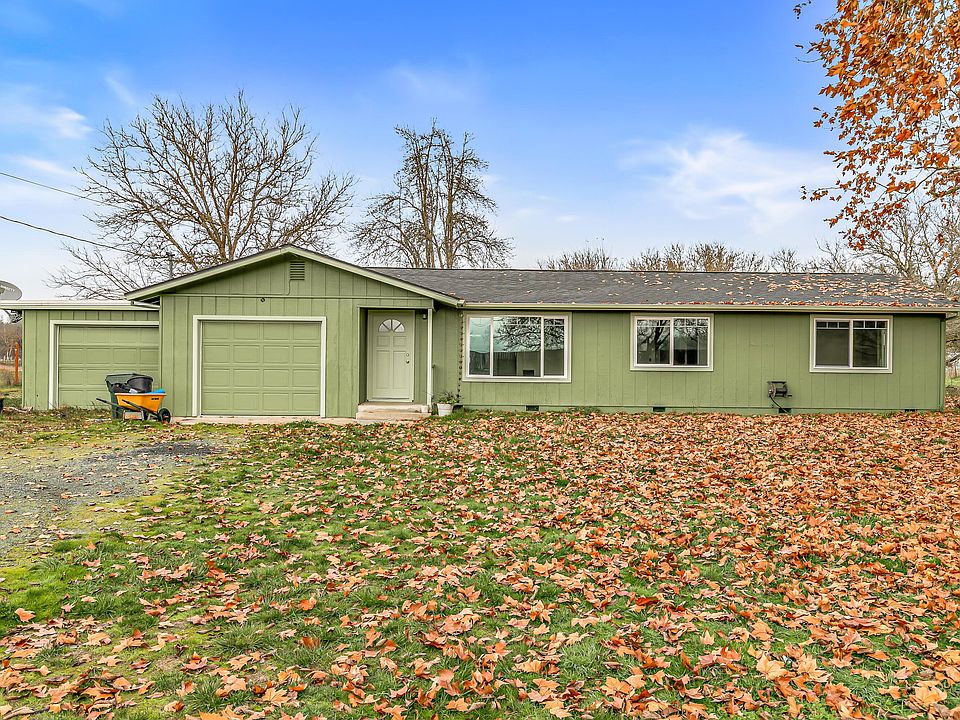 Discover nearly 9 acres of flat, usable farmland in coveted EFU zoning—an ideal canvas for your agricultural, homestead, or country-living dreams. This rare offering includes established water rights from Evans Creek, a barn, greenhouses, and fully fenced acreage, providing the perfect foundation for farming, livestock, or sustainable living. The charming 3-bedroom, 1.5-bath, 1308 sq ft home features a freshly painted interior and exterior, offering a clean and inviting start for its next owner. A 2-car garage and a strong-producing well add practicality and long-term value. With good bones and room to personalize, this property represents an incredible opportunity—peaceful rural living with all the essentials already in place. Bring your vision and make this exceptional piece of land your own.