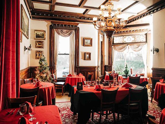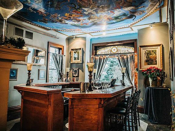 There is an exquisite piece of history located on the steep of West Main Hill overlooking downtown Kalamazoo, Michigan. This historic work of architecture is none other than The Henderson Castle, established in 1895. The castle has been recently renovated and is under new ownership since 2011 and is open to the public. The story of this home began with Kalamazoo resident, Frank Henderson. Mr. Henderson was one of early Kalamazoo's most successful businessmen. In 1890, Mr. Henderson was ready to build his home in his new residential district. The Queen Anne style house was designed by C. A. Gombert of Milwaukee, Wisconsin. The $72,000 building costs included seven baths (one with a thirteen-head shower), an elevator, a third-floor ballroom, and a hot tub on the roof (added later). The castle's exterior was constructed of Lake Superior sandstone and brick, and the interior wood included mahogany, bird's eye maple, quartered oak, birch, and American sycamore. The castle was built with 25 rooms in all and exemplified the most expensive tastes of the time. Today, Henderson Castle Boutique Inn is owned by Master French Chef, Francois Moyet, called the Jewel of Kalamazoo, and ranked the top historic inns in Michigan by AAA, the grandeur of this 11,000-square foot Queen-Ann style mansion, sitting on 3 acres, offers an intriguing blend of architectural, artistic, antique as well as modern amenities, including wireless access for business travelers. Heated marble floors, crystal chandeliers, gorgeous leaded and stained glass windows, fiber optic accents, a sauna, steam room and rooftop hot tub make the Castle a haven in the city and a romantic dream come true.