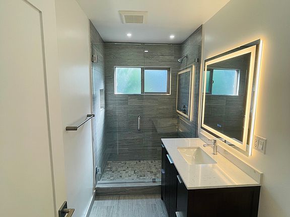 - Modern bath vanity w/ backlit mirror