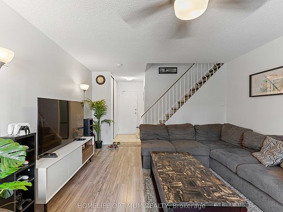 Welcome to this bright, spacious, and beautifully renovated two-level townhome perfectly situated in a vibrant neighborhood near shopping, public transit, the University of Toronto Scarborough, and just steps from Centennial College, Centenary Hospital and the renowned Toronto Pan Am Sports Centre. This move-in-ready home features a stunning new kitchen with modern cabinets and stainless steel appliances and is complemented by updated laminate flooring throughout both levels. Enjoy the open-concept living and dining area with a private direct walk-out and convenient access to a playground, ideal for families or outdoor relaxation.The thoughtfully designed layout includes a separate laundry room on the second floor and ample in-unit storage, The spacious primary bedroom boasts a 3-piece ensuite, and two closets, while the den, complete with a door can serve as a fourth bedroom or a private home office.This home is perfect for a first-time homebuyer or a family, with it's potential 4 bedrooms, or an investor with rental income potential. With nearby recreation facilities, transit connections, and everyday amenities at your doorstep, this is a rare opportunity not to be missed!
