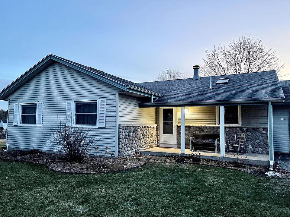 Welcome home! This move in ready, 3 bedroom 1 bathroom ranch is on the market for the first time ever. The open concept floor plan will satisfy todays buyers with abundant natural light and cathedral ceilings. The kitchen and living room are separated by a show stopping wood-clad gas fireplace with marble hearth that highlights the soaring wood beamed ceiling. Sliding doors off of the dining room open up to the expansive and park like yard. Exterior features low maintenance vinyl siding with stone accents, attached 2 car garage, additional parking and storage shed on over an acre corner lot. The full unfinished basement is waiting for your ideas. Includes Home Warranty. Don't miss out!
