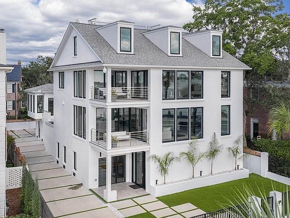 This remarkable contemporary residence on prestigious Murray Boulevard offers sweeping panoramic views of the Charleston Harbor and Ashley River from nearly every room. Completely reimagined and renovated in 2021, the home blends modern luxury with timeless elegance to create a truly one-of-a-kind living experience in the heart of Charleston's historic South of Broad neighborhood.The main floor features an expansive open-concept design with elegant living and dining areas anchored by a state-of-the-art chef's kitchen. The kitchen showcases top-of-the-line appliances--many discreetly integrated--alongside a stunning waterfall-edge island.Seamless indoor-outdoor living is achieved through a terrace on one side and a chic saltwater pool on the other. Abundant natural light pours through floor-to-ceiling windows, accentuating exquisite finishes including light hardwood floors, custom stonework, and a striking steel-and-glass staircase that ascends all three levels. This five-bedroom, six-and-a-half-bath home offers the ultimate in comfort and privacy. The primary suite feels like a private resort, complete with its own terrace, custom walk-in closet, fireplace, soaking tub, and an expansive marble shower. Each additional bedroom includes a luxurious en suite bath and generous closet space. Designed for both wellness and entertainment, the ground floor includes a fully equipped home gym, infrared and steam sauna, massage room, and an impressive theater room. An office and versatile flex space complete this level, providing endless possibilities for work or recreation. Outside, the saltwater pool area continues the home's focus on relaxation and entertainment, featuring an outdoor kitchen, fireplace, and comfortable lounge seating. Overlooking this serene retreat is a private guest house with elevator access and a full kitchen ideal for visitors or extended stays. The property is gated and walled for maximum privacy, offering off-street parking for eight or more vehicles, plus a garage for one car and a golf cart. The rooftop deck provides breathtaking 360-degree views of Charleston's skyline and surrounding waterways, an unmatched setting for sunsets or entertaining. This home represents a rare opportunity to own a modern architectural gem in Charleston's most sought-after neighborhood. With its exceptional design, world-class amenities, and unrivaled water views, it offers low-maintenance luxury living at its finest.