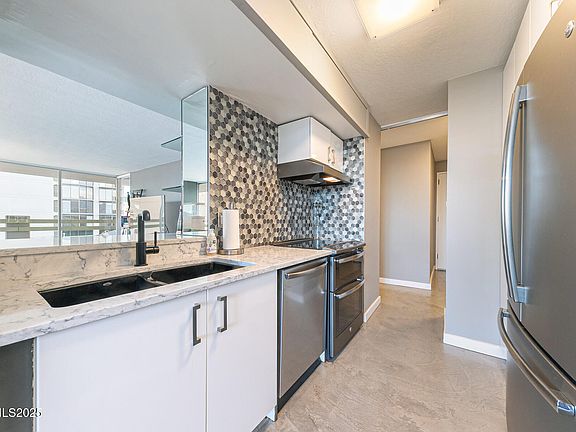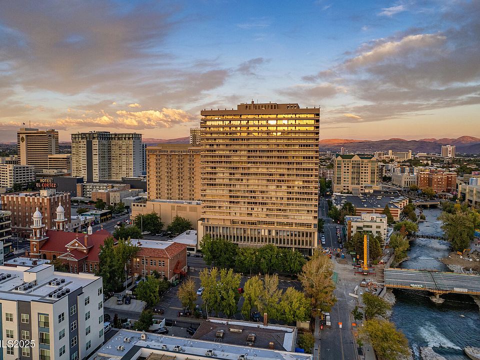 Views, Views, and More Views! Welcome to your downtown Reno retreat in one of the city's most iconic and solidly built high-rises—a beautifully maintained 22-story concrete structure with wraparound decks and sweeping views of the city, river, and mountains. Watch the lights of downtown come alive at night or enjoy sunrise coffee while the Truckee River glistens below. Inside, this completely remodeled condo blends zen-contemporary style with comfort and functionality. The kitchen features a stylish tile backsplash, built-in cabinetry and bar, and all the essentials for the home chef. Every surface has been thoughtfully upgraded, and the home has been lovingly owner-occupied—never rented—and is truly turnkey. Building amenities include a recreation room with bar, pool table, and big-screen viewing area, a fully equipped gym with treadmills, stair machines, and free weights overlooking the skyline, plus a spa and sauna just an elevator ride away. Step outside and walk to the Riverwalk, Pioneer Center, Nevada Museum of Art, or summer concerts at the amphitheater—or simply enjoy the music from your patio. Exceptional dining options in every direction make city living effortless in this stunning downtown Reno home.