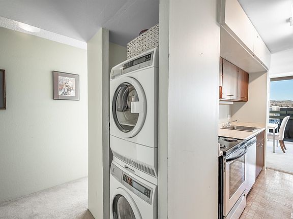 Perched on the 10th floor of Arlington Towers, this coveted "J" unit has breathtaking panoramic views of the vibrant Reno skyline, majestic Sierra Nevada mountains and the Truckee River. As you step inside, you’ll be greeted by the open-concept living space that boasts large floor to ceiling windows, flooding the area with natural light and showcasing the stunning vistas. Step out to the teak wood deck that wraps around the entire condo. Furnishings are included and in unit laundry makes this unit ready., At Arlington Towers, residents have access to a range of premium amenities designed to enhance their lifestyle. Key features include 24-hour on-site security for peace of mind, a year-round indoor swimming pool, and inviting BBQ areas for outdoor gatherings. Fitness enthusiasts will enjoy the well-equipped gym, while an on-site laundry room adds convenience to daily living. For social occasions, the elegantly appointed "River Room" serves as a perfect venue to host events with a pool table and bar seating, along with additional seating and entertainment. Additionally, parking space is available in the nearby garage for a monthly fee of $90. The HOA dues cover essential services, including water, hot water and trash.