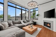 Gas fireplaceModern finishesBreakfast barSleek modern designSoaring ceilingsHardwood floorsWalk-in closet