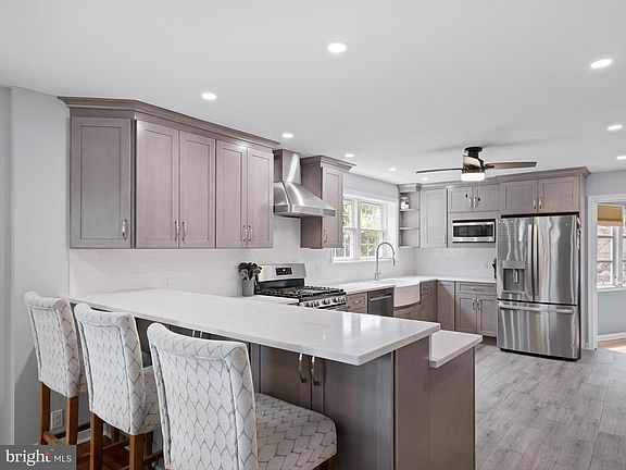 Introducing 100 N Drexel Ave, an exquisitely renovated cape cod residence located in the highly desirable Haverford School District. This home boasts numerous upgrades, starting with a brand new kitchen featuring an expansive island, recessed lighting, ceramic tile floors, a custom back splash, garbage disposal, ample cabinet space, and a French door refrigerator with an ice maker. The first floor offers a convenient full bathroom with a stand-up shower, a bedroom, a formal dining area, and a spacious living room adorned with ceiling fans and a large window. Adding to the living space, there is a den/family room at the back of the house, adjacent to the kitchen, showcasing an exposed brick wall and providing access to the deck and backyard. Upstairs, you will find two generously sized bedrooms, with the primary suite offering a walk-in closet and an additional full bathroom. The basement is unfinished but tidy, housing a washer, dryer, and an entry door. Completing this remarkable property is a one-car garage, a private driveway, and a beautifully landscaped yard. **Seller offering $5,000 Sellers Assist**