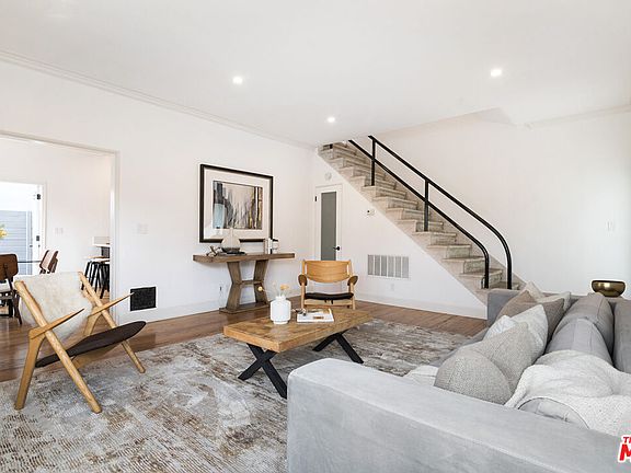 Feels like a home!! Beautifully remodeled two story townhouse with private patio/yard. It has two bedrooms and two bathrooms upstairs. Living, dining, kitchen and powder room downstairs. Tons of light in every room! Small vintage building with Art Deco architecture and bright corner windows. All rooms are spacious with large kitchen, seperate dining area with doors leading to a private yard. Washer and dryer in unit. One car private garage plus driveway parking. Furniture photographed can be rented Location, Location, Location Quiet street, steps from trendy stores and restaurants, The Grove, Beverly Center, Trader Joe's and adjacent to Beverly Hills. Minimum 1 year lease