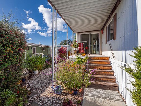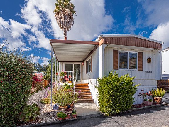 Situated in the sought-after Rodeo Mobile Estates, a 55+ community on one of the "Fingers", a premium location. This 2-bedroom, 1 bath home features a large kitchen with dining area. The living room is good sized, to where you could use a part for an office or dining, as well. The outdoor patio offers room to sit and enjoy the sun or spend time in your garden. There is also a shed that offers extra storage or workshop. The Rodeo Mobile Estates is a rent-controlled 55+ over park w/ many amenities for the vibrant community. A beautiful pool, a clubhouse, & an RV/boat parking area are all available to enjoy! Close to downtown Soquel for shopping & dining, or head west to the beach. Quick access to Hwy 1 to Santa Cruz or out to Monterey.