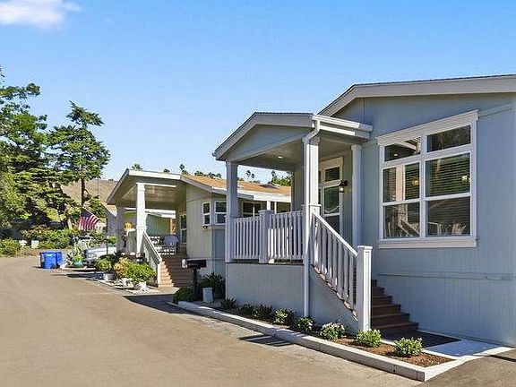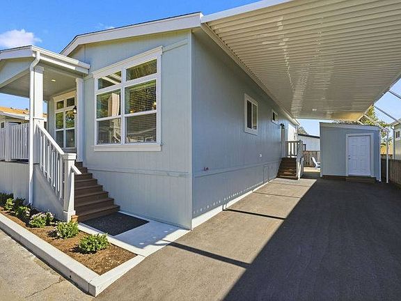 There is absolutely nothing like this on the market! The attention to detail in this beautiful custom home and on its exceptional lot is second to none! What a bright and airy home. You will just love being here! From the sunny front porch with a tree and sky view to the private rear patio, you will just want to linger and enjoy every moment. Brand New Super Extra Wide Driveway, private paver patio and large custom shed are such rare and great assets that make this home site truly exceptional. Act Now, to take advantage of this rare opportunity to own a brand new custom Quality Home at this amazing low price. This beautifully designed 3BR/2/BA luxury home has many features that you will not find anywhere else with features for affordable luxury living and entertaining and gracefully aging in place. Just finished, this rare beauty is set in the sought after community of Rodeo Estates in Sunny Soquel where people are friendly, neighborly and love where they live. The spacious open floor plan has large rooms, 3 bedrooms and 2 luxury bathrooms, wide hallway and doorways, 9' ceilings with crown moldings, beautiful high-quality laminate floors and upgraded carpet in 2 of the bedrooms. The fabulous kitchen has beautiful quartz counters, island with trash/recycle pullouts and room to sit, stainless steel appliances and lots of gorgeous cabinets space. Large windows, transoms, skylights and solar tubes flood the house with natural light. It also has the best utility room of any manufactured home you will find with tons of extra storage, a coat closet and full pantry as well as cabinets above and to the left of the washer/dryer hookups and comes with a 7 year warranty. Site improvements include a an extra wide driveway and carport with extensions for 2+ full cars of comfortable parking, a place for outdoor projects, private rear paver patio, a custom shed, paver walkway around the side of the house, utility upgrades, landscape curb in the front of the house. Rodeo Estates is an affordable 55+ community close to everything and just minutes to Beaches and all that Santa Cruz has to offer! Serial Number 2483A/B. Come to Our Open Houses or CALL FOR A PRIVATE APPOINTMENT. Price has been drastically discounted for a quick end of year sale. Come home for the holidays!