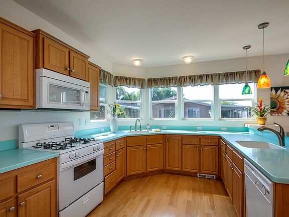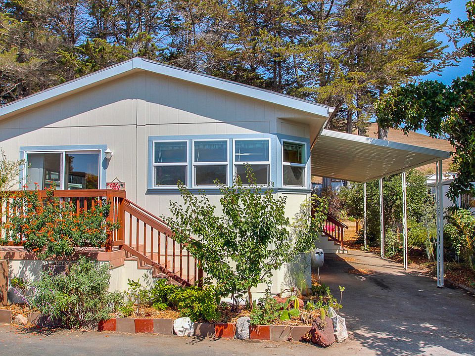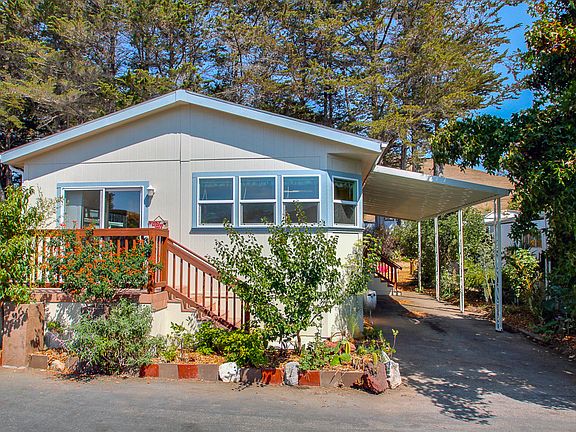 2010 move-in ready home waiting for you this new year!!! Situated in Rodeo Mobile Estates, great sunny location in park next to other newer homes that display pride of ownership. There is privacy at the property with only green space and storage located directly in back. Large wrap-around front deck welcomes visitors and has lot of windows to bring in natural light. Interior features large open concept kitchen/living, gas appliances, pantry area, central heat, nice sized bedrooms with master having access to backyard. Also, inside laundry room is another plus and leads to carport. On the exterior find upgraded drainage and drip irrigation, backyard space is private, fenced and great for gardening. Another property highlight is its accessibility- has an outside lift from carport and bathrooms with rail systems. This 55+ community has a welcoming feel and a central mid-county location, come sea it today!