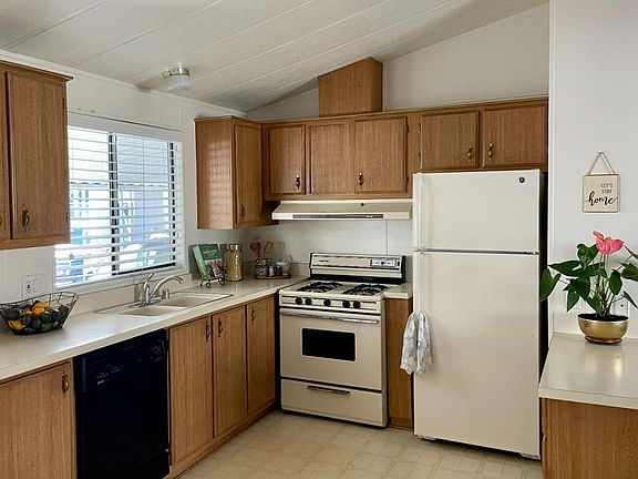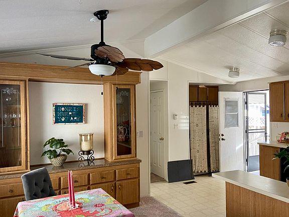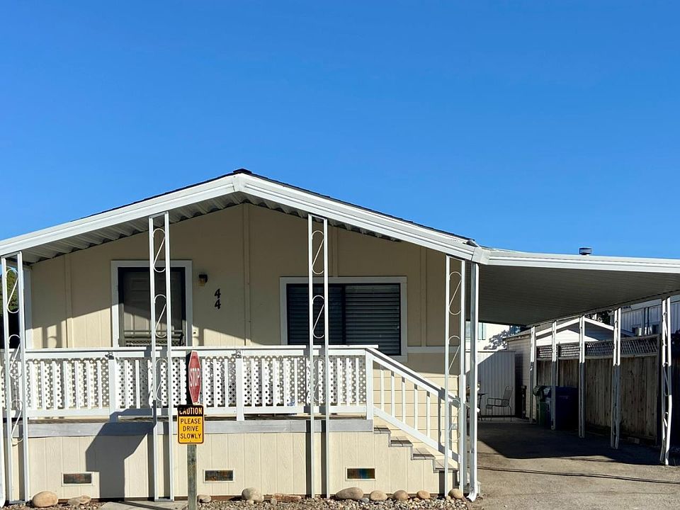 Located in the welcoming 55+ community of Rodeo Mobile Estates. This charming home has two bedrooms and two full bathrooms, with a spacious living room and open concept. The patio space provides room for outdoor dining, gardening, and even a shed for extra storage! Park amenities include a swimming pool, outdoor shuffleboard and clubhouse.