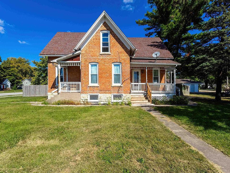 This is a charming, all red brick turn of the century home built in the early 1900's. This house features three bedrooms and is situated on a corner lot, offering a spacious layout. Two cozy side porches provide inviting outdoor spaces to relax. The home has alley access to the 2 car detached garage with a new roof Sept 24, and provides for convenient parking. The large fenced yard is ideal for your outdoor activities, gardening or simply enjoying the fresh air. Inside the updated kitchen features newer appliances which are included, making it move in ready. Luxury vinyl panel flooring has been installed on main level. Main floor also includes a convenient laundry area and updated bath. Upstairs are 3 nice sized bedrooms and bath. This home boasts newer vinyl replacement windows throughout. The furn/ca is approx. 12 yrs, water heater 6 yrs, newer water service to the street, fence 5 yrs old and new steps on front porch. This home is a prefect blend of historic charm and your modern conveniences. This home is an "estate" and sellers are selling "AS-IS" with no repairs. Buyer inspections welcome for their knowledge only.