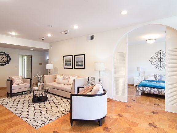 Welcome to this chic and modern home in a highly desirable area in Los Angeles! Nestled between the best of West Hollywood and Beverly Hills, this spacious property offers 1560 sqft (aprx) of luxury and commodity living! Featuring 2 bedrooms, 2 bathrooms, a formal living room with lovely fireplace, a formal dining room, and bonus den perfect for a small office. Gorgeous hardwood flooring throughout the home, with recessed lighting and central air. The beautiful large gourmet kitchen has only top of the line stainless steel appliances, immaculate cherry wood cabinetry, stunning tiled flooring and countertops, and a built-in wine bar perfect for entertaining in the extra dining area. The master bedroom offers a large walk-in closet with hardwood flooring, a drop down bathtub in the master bath, and his and her vanity sinks with gorgeous tile flooring. Take in and enjoy the wonderful views of beautiful trees in your own spacious balcony. Other features include a laundry area in unit with washer and dryer, as well as gated subterranean tandem parking for two cars. This home is close to the best shops, entertainment and eatery in this prime location! Everything about this property oozes impeccable taste!