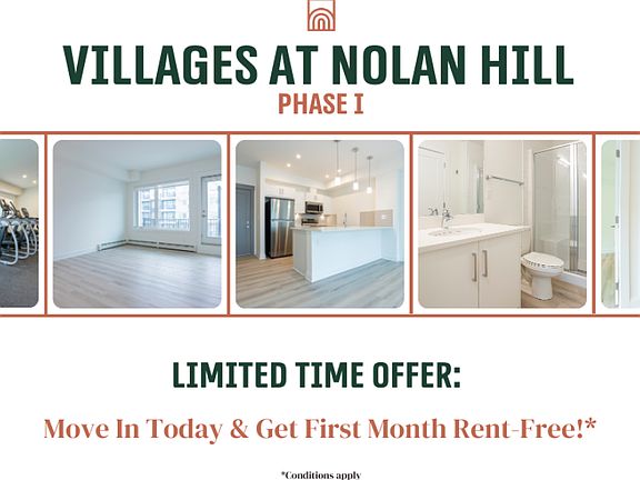AboutThe Villages at Nolan Hill sits in the heart of a vibrant, nature-filled community with big city convenience and is a 25-minute drive away from downtown Calgary. Nolan Hill offers spacious, light-filled 1, 2- and 3-bedroom apartment suites for rent with upscale fixtures and finishes such as quartz countertops, stainless steel appliances, and in-suite laundry. Close to grocery stores, restaurants, parks, and all your needs are within walking distance. This is an excellent location to enjoy the best of city living. This rental building and location are perfect for families, seniors, and young professionals.For more information about this building please visit the Villages at Nolan Hill website.