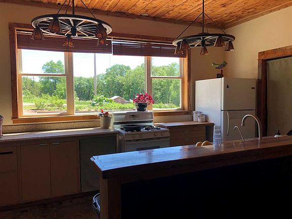Unique fun secluded acreage surrounded by mature shade trees within the city limits of Center Nebraska. This began as the former Center high school gymnasium and is now transformed into a living area with a partial gym remaining for basketball and volleyball fun. Ready to move in with lots of space to make your own. 3 bedrooms and 1 bathroom upstairs with walk in shower. Master bedroom has walk in closet. Deck on the upstairs to watch the fun below. Bathroom on main floor with walk in shower. Possibility of a 4th bedroom on the main floor. Kitchen with attached dining area with 2 pantry areas. Updated electrical breaker box. Great area for kids entertaining or enjoying private family time. Enjoy relaxing on the front patio or patio off the remodeled shed. Huge garden area. Newly remodeled small guest house down the hill from the main living area. This is a must see to appreciate.