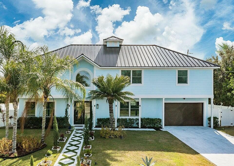Outstanding rebuilt 2022, 2-story corner-lot home featuring 5 beds, 4 baths, new heated lit in-ground pool with infinity jacuzzi & cabana bath. New standing seam metal roof, Anderson impact windows/doors, new HVAC, Insta Hot tankless system & 10-ft ceilings. Custom kitchen with Viking appliances, propane gas range, upgraded cabinets & countertops. Porcelain tile floors, oak stair risers on hardwood half-circle stairs, laundry up & down. Grand primary with huge walk-in closet w/ washer/dryer & spa bath. Custom garage storage, generator & mini split hook-ups, gas grill connection, lush landscaping, large fenced backyard, with space to enlarge, Perfect home for entertaining!