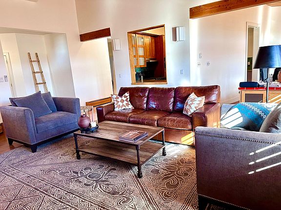 Casa Nueva is located in the tree-studded hills of Vista Encantada, off of Bishop's Lodge Rd. This gorgeous, custom, pueblo style home is just minutes from the Historic Plaza, Canyon Road, and a short 25 min drive to the Santa Fe Ski Basin. This warm and inviting property features high vaulted cedarwood ceilings, two gas fireplaces and an outdoor sauna to enjoy in the cold months.
