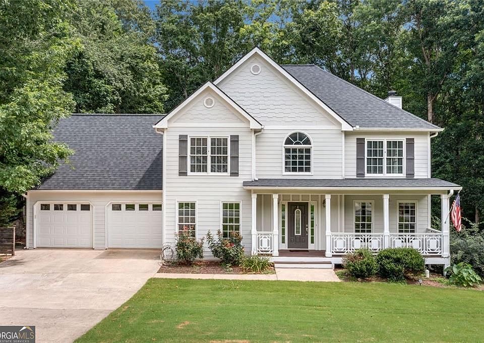 Get a 1/0 rate buy-down for the first year using the Seller's preferred lender! Welcome to this charming home nestled on a generous 0.8-acre wooded lot surrounded by greenspace. You'll appreciate the quiet privacy and natural beauty the moment you arrive. Kitchen-level parking makes life easier, and the covered country front porch is the perfect spot for morning coffee or relaxing at day's end. Step inside to find stunning hardwood floors on the main level and a dramatic two-story foyer that floods the space with light. The open floorplan connects the living areas with ease. The kitchen features a bright eat-in space, breakfast bar, and mobile island for flexible prep or serving. A formal dining room nearby adds an elegant space for gatherings. Upstairs, the spacious primary suite offers a true retreat with a large walk-in closet. You'll also find a large upstairs laundry room with a utility sink for added convenience. All secondary bedrooms are spacious. There's also a standout guest or in-law suite. It rivals the primary suite with its large bedroom and private full bath. Upstairs, you'll find four bedrooms and three full bathrooms. This setup makes it easy for guests or multi-generational families to stay comfortably. Step out back to a private rear deck that overlooks a large fenced backyard-perfect for entertaining, gardening, or play. The full unfinished basement offers endless possibilities to expand or create the space you've always wanted. This home blends thoughtful design with flexible living in a peaceful setting. Come see the comfort, charm, and potential this property has to offer.