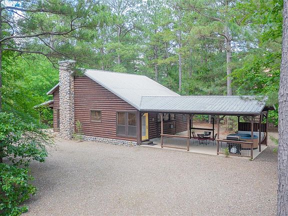 Nestled amidst towering pine trees in the well-established Kaniatobe Trails, Okie Hideaway boasts a solid rental history and comes fully furnished. Located just minutes away from popular attractions like Girl's Gone Wine, Grateful Head Pizza, and the breathtaking Broken Bow Lake, this property offers convenience and serenity. Positioned away from the road, it ensures ample privacy on its expansive 1.395-acre lot. The cabin spans 1,050 square feet and is complemented by 638 square feet of covered porches, providing additional space for relaxation. Recent upgrades, including a new dishwasher, refrigerator, and AC return air handler, enhance the overall appeal. Inside, the cabin showcases luxurious king-size beds, elegant copper sinks, modern flat screens, stainless steel appliances, exquisite granite countertops, charming log cabinets, a cozy wood-burning fireplace, a four-person outdoor hot tub, and an inviting outdoor fire pit. The generous circular driveway easily accommodates large boats and trailers. This cabin is fully prepared for rentals as soon as you close the deal, making it an excellent investment opportunity. Don't miss out on this remarkable property—it won't remain available for long!
