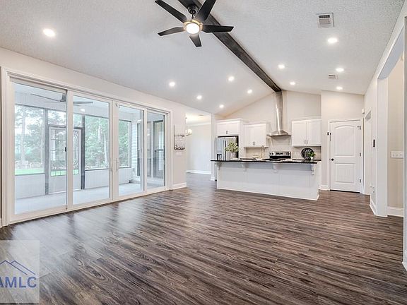 Custom Marshfront Beauty on 1.23 Acres! Tucked away on a serene, tree-lined lot, this custom 4BR/2BA home offers a thoughtfully designed split floor plan and stunning marsh views. Step through elegant double solid wood doors with beveled glass into a grand foyer and a spacious Great Room featuring a cozy fireplace and vaulted, wood-beamed ceiling. Luxury vinyl flooring runs throughout, with tile in the baths and plush carpet in the bedrooms. The chef's kitchen is a dream with black stainless steel appliances, custom cabinetry, a walk-in pantry, and a breakfast island with sink—all perfectly positioned to take in the natural marsh views from the adjacent dining area. Three bedrooms share a stylish Jack & Jill bath with dual vanities and a private tub/latrine, while the Owner's Suite is a true retreat—boasting an oversized tub, large walk-in shower, dual vanities, linen closet, private latrine, and a huge walk-in closet with direct pocket door access to the laundry room with custom cabinetry and deep sink. Enjoy quiet mornings or peaceful evenings from the screened-in porch overlooking the marsh, or welcome guests from the charming covered front porch. The oversized 634 sq ft 2-car garage includes a heated storage room for year-round comfort. Additional features include motion-activated floodlights, exterior lighting wiring (including Christmas light outlets/switches), and a private, wooded driveway. Don't miss this hidden gem—schedule your private showing today!