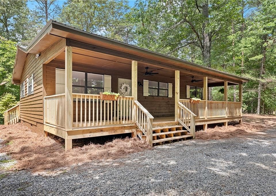 THIS IS IT!!! This super charming, rustic and welcoming home is nestled on almost 2 acres of serene property at the end of the road. It is surrounded by over 1300 acres and feels very remote and tranquil with an off-the-beaten-path feel leading to it. This FULLY renovated one-level living retreat offers two bedrooms and 1.5 bathrooms. This cabin offers a NEW METAL ROOF, ALL NEW SIDING, NEW LIGHTING, ALL NEW APPLIANCES, including a washer and dryer, making this home truly MOVE IN READY! You can watch turkey and deer from the incredible rocking chair covered front porch. Bring your toys with no restrictions and NO HOA!!! This property is MINUTES away from Downtown Dahlonega, UNG, wineries, parks, and trails, it can easily be your primary home, a weekend getaway, or an Airbnb for investors.