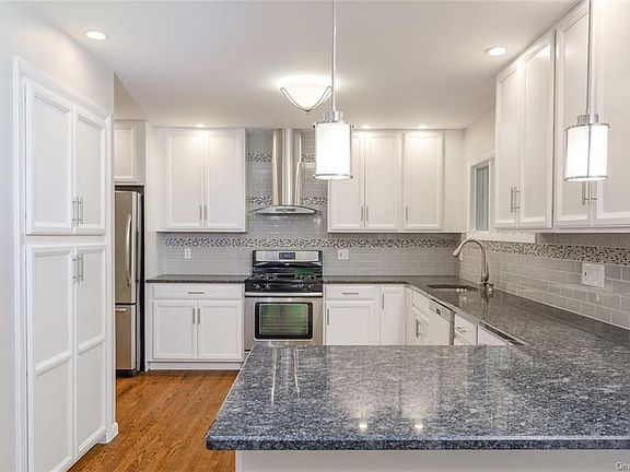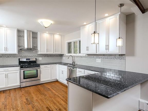 Lovely renovated Brick Raised Ranch on a sprawling park-like property with beautiful trees, lawns and patios. Renovated in 2018 with an eye to detail as seen in the state of the art kitchen with granite, new appliances, extra storage and convenient island with pendant lighting- Enjoy a contemporary open floor plan into the dining and living area, with mid-century features in large floor to ceiling windows, cathedral and wood beamed ceilings and sliders to patio. Restored dark hardwood floors throughout and cool grey walls bring this solid home into the 21st Century. Upstairs are 3 bedrooms, and 2 full baths, one with bathtub and one with shower. Downstairs is a family room with ceramic tile floors, brick wood-burning corner fireplace, 4th bedroom/office, full bath, laundry room and garage. 2400 Square feet of modern living on nearly an acre of level property, with lots of parking, close to Pearl River Train, NJ border, major highways and Children's Park.
