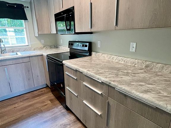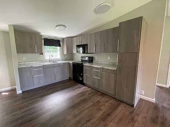 Spacious double wide home nestled on a permanent foundation, ensuring stability and longevity. Recently renovated, it boasts a modern aesthetic with new cabinets adorning the kitchen, enhancing both functionality and style. New roof installed 2024. The master suite offers a walk-in closet and features a brand new double granite top vanity for added convenience and elegance.