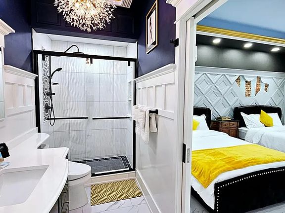 Enjoy a bright, airy living area, a spa-like tile walk-in shower, and a stylish shared lobby. It's the perfect mix of vintage character and contemporary comfort.