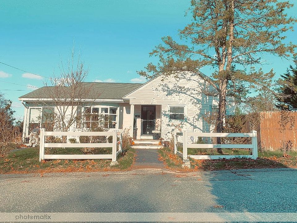 This house is in TIVERTON, RI. Views of the bay. Has bright sunny kitchen, Located on top of Turkey Hill. Has hardwood floors, living room had woodstove insert in the fireplace and lower level has second fireplace. Fenced in yard with a fire pit plus a storage shed. Radiant heat in ceiling. Full finished basement with tile floors, laundry and a full bath. Workshop off garage. Three season room off kitchen. Great location, on a clear day you can see East Greenwich, and the bridges. Prime location for beaches, Newport, Middletown. the large windows on the back of the house let the sun pour in with the views of the ocean through the trees