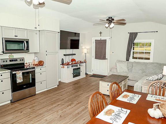 all windows, fresh paint and accent walls, added closet system to one room, refinished all door frames to neutral colors, made updates to the foundation-$12,000.00. Huge upgrade- Electricity/Power ran to the Shop. Outside Stepping stones and fresh mulch added near front by mailbox. Has bush hogged of land and cleared across from home.