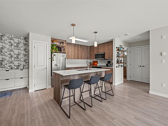 South-facing exposureNatural lightLarge kitchenQuartz countersStainless steel appliancesPrivate balconyWalk-through closet