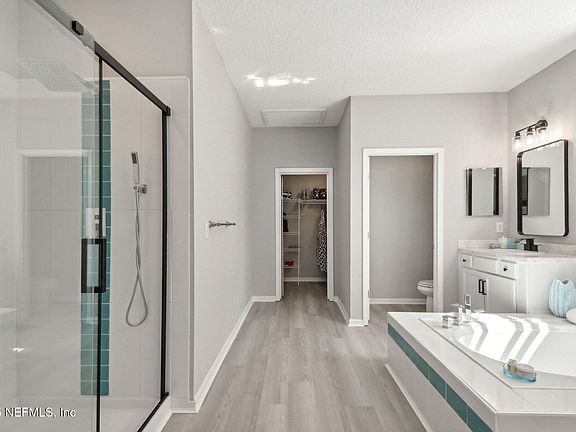 Welcome to your dream home in the heart of Nocatee! This beautifully renovated home offers a rare pond-to-preserve view, framed by mature trees for ultimate privacy. Enjoy an updated kitchen with new appliances, luxury vinyl plank flooring on the main level, and fully updated bathrooms. The first-floor primary suite features a tray ceiling and separate vanities, while upstairs offers a spacious loft and 2 bedrooms—an ideal layout for family living. Additional features include a main-level flex space, tons of storage space, a 2.5-car tandem garage, and a reverse osmosis water system. Fresh paint, high ceilings, and abundant natural light enhance the home. Step outside to a private screened-in lanai, perfect for morning coffee or watching the kids play. Located just a golf cart ride from top-rated schools, shopping, dining, and Nocatee's world-class amenities. Don't wait, schedule your private tour!