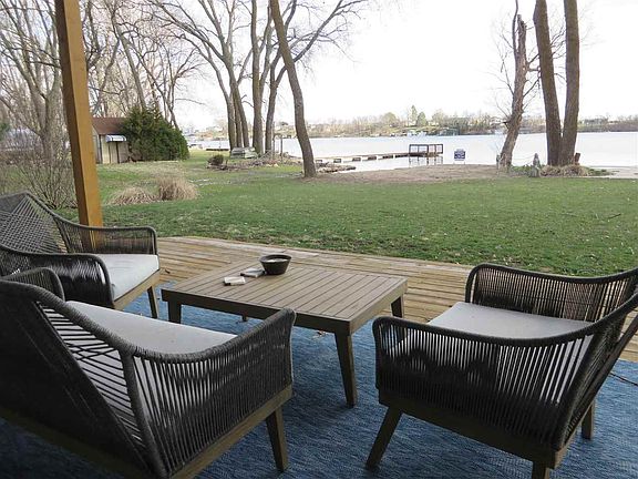 Large, peaceful lake escape! Enjoy the lake year round at this location with four bedrooms/two and half bathrooms, open kitchen/living rooms, large deck, and much more! Very nice shoreline with a concrete patio, dock, tiki bar, and spot to launch a boat. Has a metal roof, concrete siding, and two storage areas as well. Lots of space for the whole crew, come take a look!