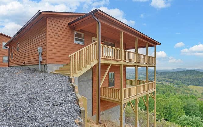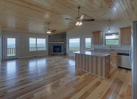 You will be hard pressed to pull yourself from the two covered porches and these outstanding 180 degree VIEWS! NEW CONSTRUCTION 2 bedroom 2 bath wood sided home. Granite counters and island, wood floors and ceilings and a stacked stone fireplace contrast beautifully with the drywall and ight bright palette! Full unfinished basement. Located conveniently between Murphy and Hayesville. Contractor awaits final delivery of some of the cabinets but other than that it is ready for you to move in!