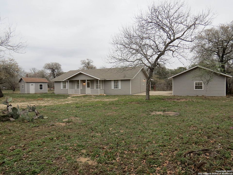4 bedroom home on nearly 2 acres. Main house is 1,835 square feet. Flex room attached to garage is 331 square feet of additional living space. New stainless appliances. New granite counters. New faux wood flooring in living area, dining, kitchen, and flex space. New carpet in the bedrooms. Fresh paint inside and out. New 2 inch blinds and window treatments are included. Fully fenced. 2 car garage plus a shed. Gated entry. New roof. New AC and heat system.