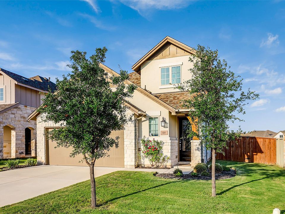 Beautiful 2,652 SF Highland Home on a private 50’ greenbelt lot with no neighbors behind or to the side in sought-after Santa Rita Ranch North. Over $50K in upgrades with 4 bedrooms + flex space, soaring ceilings, and a chef’s kitchen with built-in stainless appliances. Primary suite down with spa bath; 2 bedrooms + bath upstairs offer the perfect retreat. Covered patio overlooks a spacious backyard with room for a pool. Oversized 2-car garage with storage/work area. Enjoy resort-style amenities including pools, water slides, pickleball, parks, trails, and dog park. Conveniently located near Georgetown, Liberty Hill, shopping, dining, and top schools.