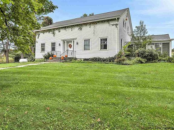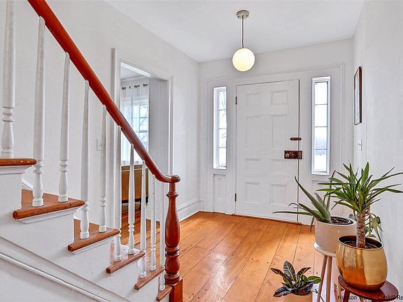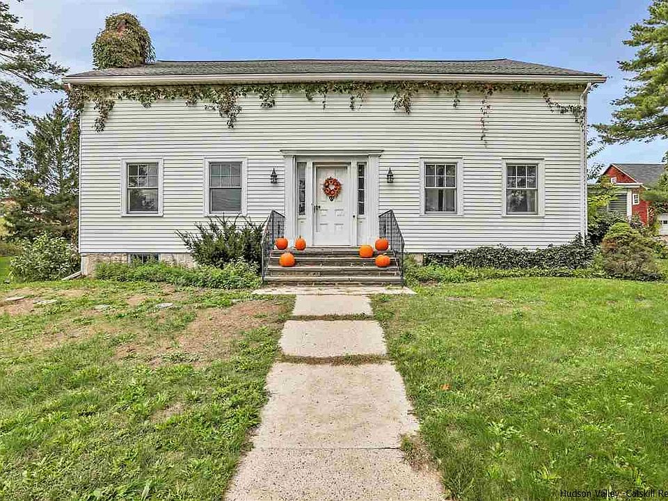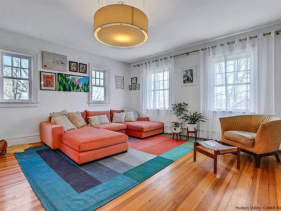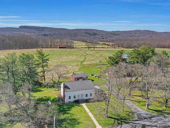 Set at the foot of the Shawangunk Ridge, this extraordinary 1848 colonial farmhouse sits on 9.7 acres with panoramic views of the mountain, and adjacent to 134 protected acres by the Open Space Institute, known as the River to Ridge Trail. This home is the mecca for an outdoor enthusiast, with sweeping west-facing views, this property offers direct access to the trail system which leads to the Mohonk Preserve, or directly to the vibrant Village of New Paltz. This stunning 2500 SF, 4-bedroom, 3-bathroom home, features 2 large barns and 2 smaller outbuildings. Possibilities are endless as to what one can do with the space and structures. Recent renovations flawlessly mix the old-world charm with modern updates. The main floor in sundrenched with natural light and offers warm spaces for entertaining and relaxation. A large open kitchen with vaulted ceilings, butcher block countertops and farm style sink create the ideal space for the chef in the family. The kitchen flows into an open dining room, with plenty of space to entertain guests near and far. Adjacent to the dining room is the sprawling living room, with plenty of windows offering beautiful sunlight in this open space with the custom built-in bookcases. The breathtaking staircase with original wood detail leaves the oversized entryway and brings one to the wide planked hardwood floors on the second-floor bedrooms and hallway. An ensuite primary bedroom offers a gorgeous remodeled private ensuite bathroom. The three additional bedrooms are very generous in size and share the second renovated full bathroom in the home. An easy walk-up access to the attic with tons of storage is off of the main 2nd floor hallway. On the other side of the grand staircase, one will find the laundry room and the summer kitchen with a bath and additional living room. This exceptional home is great on its own, however the local history of this property is outstanding. In 1891, this property was called “the View House Farm”. Historic restored homes with such charm, beauty and access to the outdoors are hard to find. Come embrace the beauty of 100 Red Barn Road.