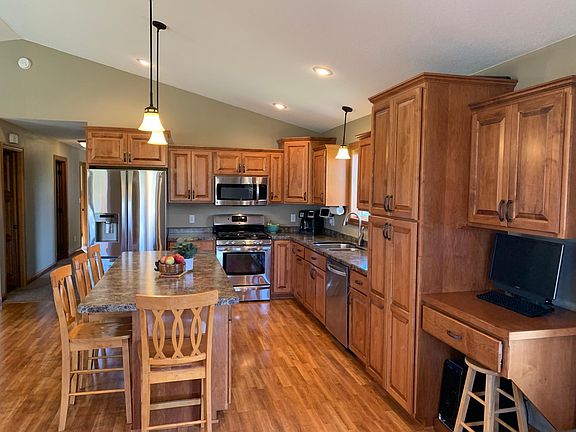 6 bedroom, 3 bath home located in the highly desirable London Hills. This home has been well cared for and welcomes you the minute you step inside. The Large foyer has a built-in bench and coat rack with access to the 3-stall heated garage. The primary bedroom has a private bath and is located on the upper level along with two additional bedrooms, laundry, kitchen, dining, and living room. The kitchen features maple cabinets and the vaulted ceiling gives it a spacious feel with sliding glass doors that lead to the 12x14 deck. Lower level walkout features a huge great room with a gas fireplace and three additional bedrooms. This home is very spacious and so is the yard. Backyard has plenty of room to play or entertain with 2 nice patio areas and a fire pit in the woods. The lot is partially wooded with good privacy and is nestled on a corner lot. Call for a private showing or more details.