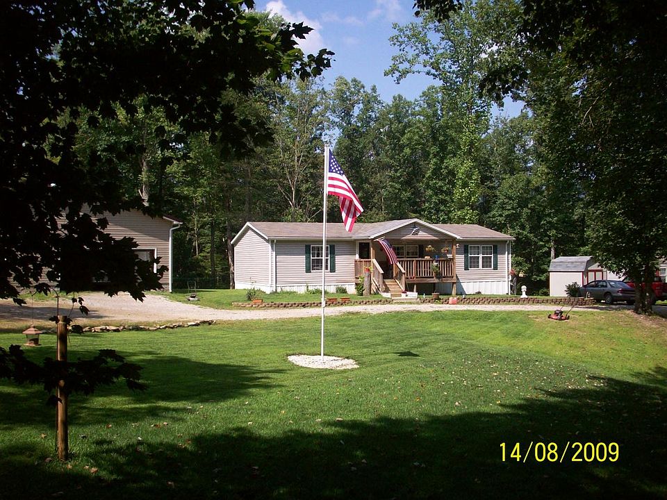 Very private!!! Watch the wildlife from your own front porch. 2003 3 bedroom, 2 bath double-wide on approimately 32 acres. Centraql heating and cooling. Equipped kitchen. Covered deck on front and deck on back. Also includes a 51 x 40 detached garge with openers, and a 2007 14 x 70 single-wide with 2 bedrooms and 2 baths, central heating and cooling, decking and storage building. Pond.