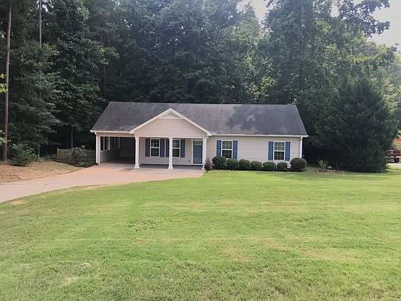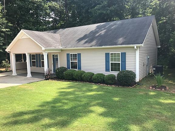 STEPLESS ENTRY, 3BR/2BA Ranch on 1.31 Wooded Acres, Large Family Room, Kitchen with Breakfast Area, 3 Stainless Appliances, White Refrigerator Stays, Master on Main, New Paint, New Flooring, Screened Back Porch, Fenced Area for Dog, Covered Front Porch, Carport, Large Front Yard, Landscaped, Heat Pump 3 Years Old, Near I-20, Home is In Very Good Shape, $129,900.