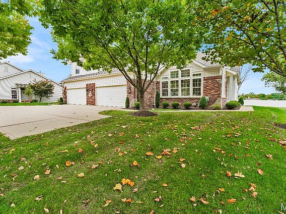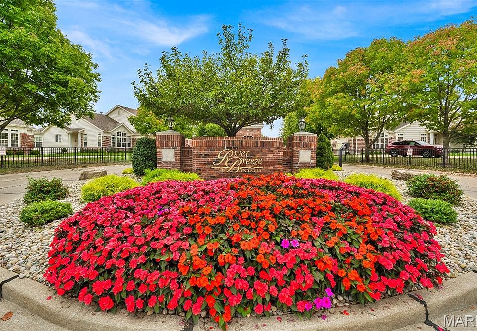 Discover Perfection Plus in this exceptional ranch villa offering easy, maintenance-free living in the gated community of River Breeze Estates. From the moment you arrive, the stately columns, crown molding, and 9’ ceilings set the stage for refined living. A dramatic foyer opens to a spacious dining/living room with Palladian windows that provide flexible space for both everyday living and entertaining. The open-concept kitchen, family room, and sunroom are surrounded by windows—shutters upstairs and solar shades below—filling the home with an abundance of natural light and tranquil views of the beautiful backyard. The kitchen is a cook’s delight, featuring granite countertops, a center island, rich hardwood floors, and plenty of cabinetry. Cozy up beside one of two gas fireplaces located on each level. The inviting primary suite offers a bay window, dual sinks, water closet, and walk-in closet with custom storage. The lower level is ideal for guests, complete with a large rec room, bedroom, sleeping area or den, and full bath. Main-floor laundry adds convenience, while the HOA handles lawn and snow care for easy-breezy living. Additional updates include a newer roof, deck with retractable awning, hardwood flooring, and custom closets in both bedrooms. This rare gem combines elegance, comfort, and carefree living—all in one beautiful package!