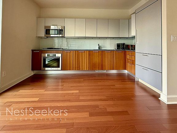 Beautifully bright and impeccably maintained, this sophisticated oversized one-bedroom, one-bathroom home boasts stunning eastern city views and an abundance of natural light through its expansive windows. Spanning 911± square feet, this residence offers a perfect blend of luxury, comfort, and modern design. A welcoming foyer leads into an expansive living and dining area, where rich Brazilian planked hardwood floors complement the sweeping skyline views. A custom-built sleek wall unit elegantly frames the living space, offering both functionality and aesthetic appeal.The gourmet kitchen is a masterpiece of design, featuring sleek stone countertops, an elegant rectangular glass tile backsplash, and abundant cabinet storage. High-end appliances include an integrated Sub-Zero refrigerator/freezer, Miele oven and gas cooktop, LG microwave, and Miele dishwasher—offering both style and top-tier performance for culinary enthusiasts. Perfect for entertaining! Indulge in the spa-like bathroom, showcasing a Kohler soaking tub, a separate glass-enclosed shower, and elegant limestone tile flooring and walls. Waterworks fixtures, a custom double-door wood vanity with a luxurious stone countertop, and a spacious linen closet complete this serene space. The apartment also features a Maytag commercial washer and vented dryer. The primary bedroom is a sun-drenched retreat offering a quiet space and city skyline views. It also features a spacious custom California Closet with adjustable shelving, ensuring effortless organization. An additional custom California Closet in the foyer’s coat closet provides enhanced storage solutions, blending functionality with sleek design.