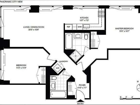 It has a split two bedroom layout with en-suite bath in the master bedroom. The master bath features both a soaking tub as well as a stall shower. There are herringbone hardwood floors throughout, individually controlled heat and air conditioning in each room as well as a washer/dryer. The Avery is a full service white glove condo that includes a state-of-the-art fitness center, children's playroom, game room, screening room, WiFi lounge and private outdoor garden for the residents. There is also a parking garage on the premises for an additional fee.