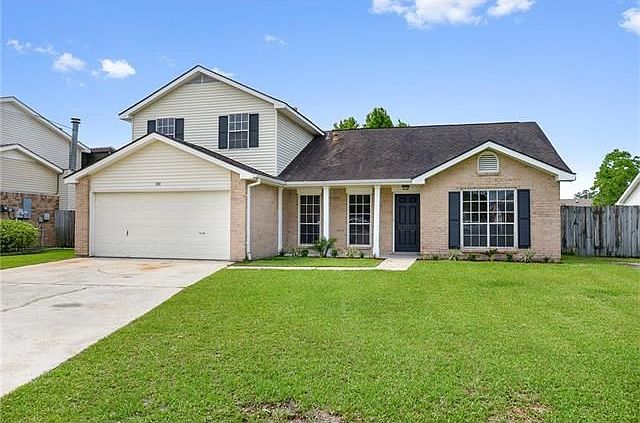 Here's Home Contentment" 100% Financing Available on this great home with plenty of curb appeal. Move in condition with new carpet, fresh paint, some new fans & light fixtures. Soaring ceiling in den with cozy fireplace. Formal living & dining room. Meal prep is a breeze in this spacious kitchen with oak cabinets & new granite counters. Master down plus 3 nice size bedrooms upstairs. Large privacy fenced yard with shed. Free Home Warranty.