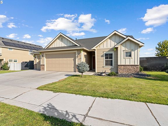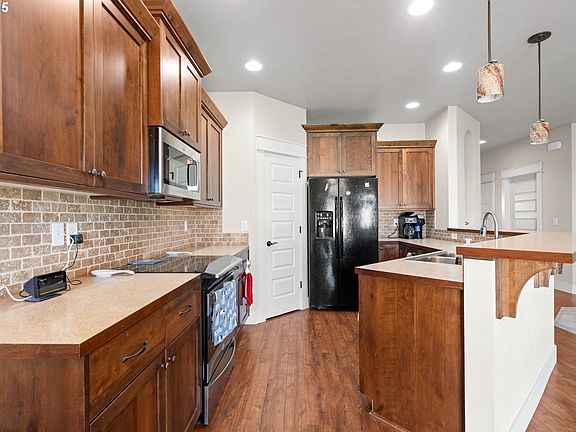 Welcome to this 1,534 sq ft home perfectly designed for comfort and entertaining. Seated on a spacious corner lot, this 3-bedroom, 2-bath residence features vaulted ceilings and an open floor plan that seamlessly connects the kitchen, dining area, and living room.The kitchen is a standout with its stylish tile backsplash, center island, and pantry, offering both function and charm. The owner’s suite provides a private retreat with a large closet, double sinks, soaking tub, and custom tile shower.Step outside to a backyard built for entertaining—complete with a covered patio, built-in gas BBQ connection, and a cozy fire pit, all overlooking the large fenced yard. A 3-car attached garage adds convenience and plenty of storage space.This move-in ready home combines thoughtful details with a fantastic layout—don’t miss the chance to make it yours!