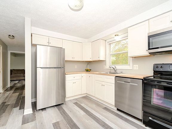 CHARMING gambrel style home features a cozy and inviting atmosphere with plenty of space for comfortable living with 6 rooms, including 3 bedrooms and 2 bathrooms. Large living room is perfect for entertaining friends & family, while the adjacent dining area is an ideal spot for enjoying meals with loved ones. Kitchen features brand new appliances, butcher block counters & upgraded vinyl plank flooring that spans throughout the entire first level. An added bonus on this main level is an updated FULL bath! New carpets have been installed throughout the entire second level. Front to back primary bedroom offers two closets, vaulted ceiling and skylight. Two additional bedrooms & full bath complete this level. Outside, the property features a spacious fenced in backyard with plenty of room for entertaining, gardening, or just enjoying the relaxing waterfall & sounds of the newly installed Koi pond. This home offers a perfect blend of cozy charm and modern convenience, providing a comfortable and welcoming space for you to call home. Book your showing today!