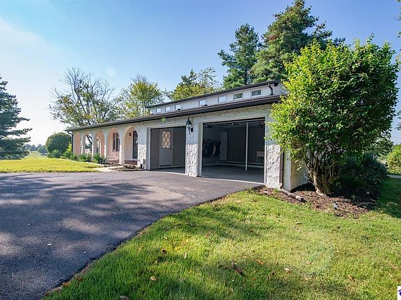 OPEN HOUSE SUNDAY SEPTEMBER 21 2:00PM -4:00PM Mediterranean-Style Home with Country Club Views Perched on a picturesque double lot overlooking the 18th hole of Elizabethtown Country Club, this 4-bedroom, 3.5-bath home combines timeless Mediterranean design with modern updates. Enjoy sweeping views from multiple outdoor porches, patios, and a sunroom that bring the beauty of the course right to your doorstep. Inside, the newly renovated kitchen shines with brand-new appliances and opens to a dining and living room, complete with a cozy fireplace. A main-level laundry room adds convenience, while the large finished basement features a recreational room with its own fireplace—perfect for gatherings year-round. The home offers a 2-car attached heated garage plus a separate Quonset hut, ideal for a motor home, workshop, or additional storage. With its wide vistas, thoughtful layout, and unbeatable location, this property offers the best in comfort, style, and versatility.