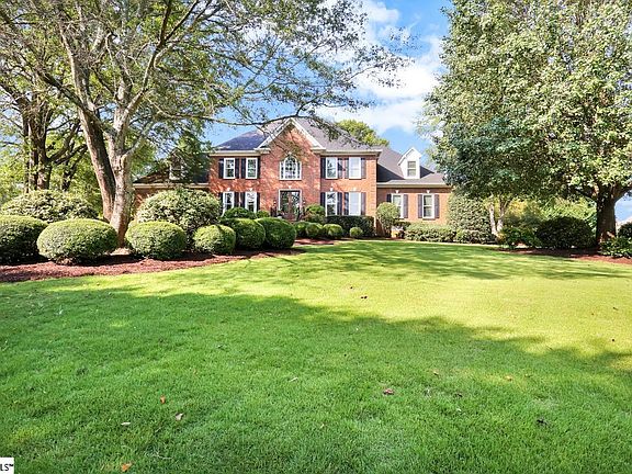 100 Royal Troon Court is a gorgeous and warm home starting with the front yard. The manicured and mature landscaping welcomes you while the extra parking by way of the circular drive is very convenient. As you enter the newly updated front door, you will notice a stunning 2 story foyer with plenty of space to be creative. You will find the office to the right with 2 sets of french doors and to your left the spacious dining room with crown molding and chair rail. As you move to the kitchen you will pass the butler pantry and enter the kitchen. Here you will find a Wolf gas cooktop, new microwave and walk in pantry to name a few. The breakfast area sits by a bay window overlooking the beautiful back yard and includes plenty of storage and workspace.  The living room is two story with gas logs and a view of the catwalk hallway upstairs. Finally, you will find the downstairs master suite tucked away from the rest of the downstairs. The master suite has two walk in closets, two separate vanities, soaking tub and glass door shower. Uniquely, the home has double staircase and fresh paint can be seen in all the bathrooms  Upstairs you will find 4 bedrooms, 3 bathrooms and a rec room with movie projector and screen. One of the 4 bedrooms has a fun, adventurous feel with multi levels, small loft and climbing wall.   Finally, the back yard is ready for making memories in the multiple living spaces. This includes a pergola covered seating area around a rock fireplace and an outdoor kitchen with a new fridge. The saltwater pool has a rock diving platform as well as a waterfall feature. The pool has thoughtfully been maintained over the years by weekly visits from Hot Springs. Don't miss the buried, ground level trampoline! After all of this, there is still plenty of green space as well as landscaping that provides privacy across the back of the yard.